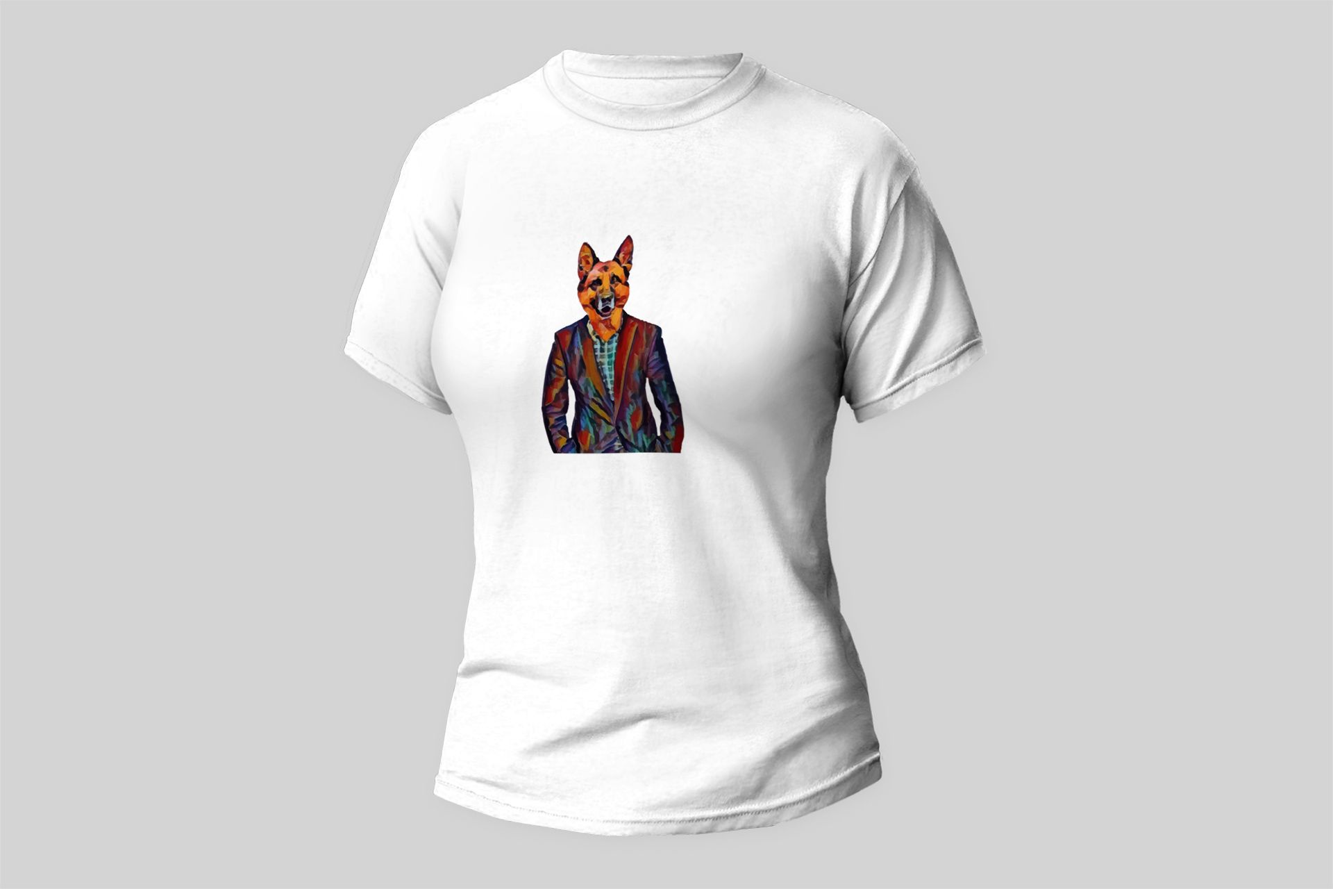 Damski t-shirt Psioszulka - koszulka Owczarek Niemiecki w garniturze - śmieszna koszulkaDamski t-shirt Psioszulka - koszulka Owczarek Niemiecki w garniturze - śmieszna koszulka