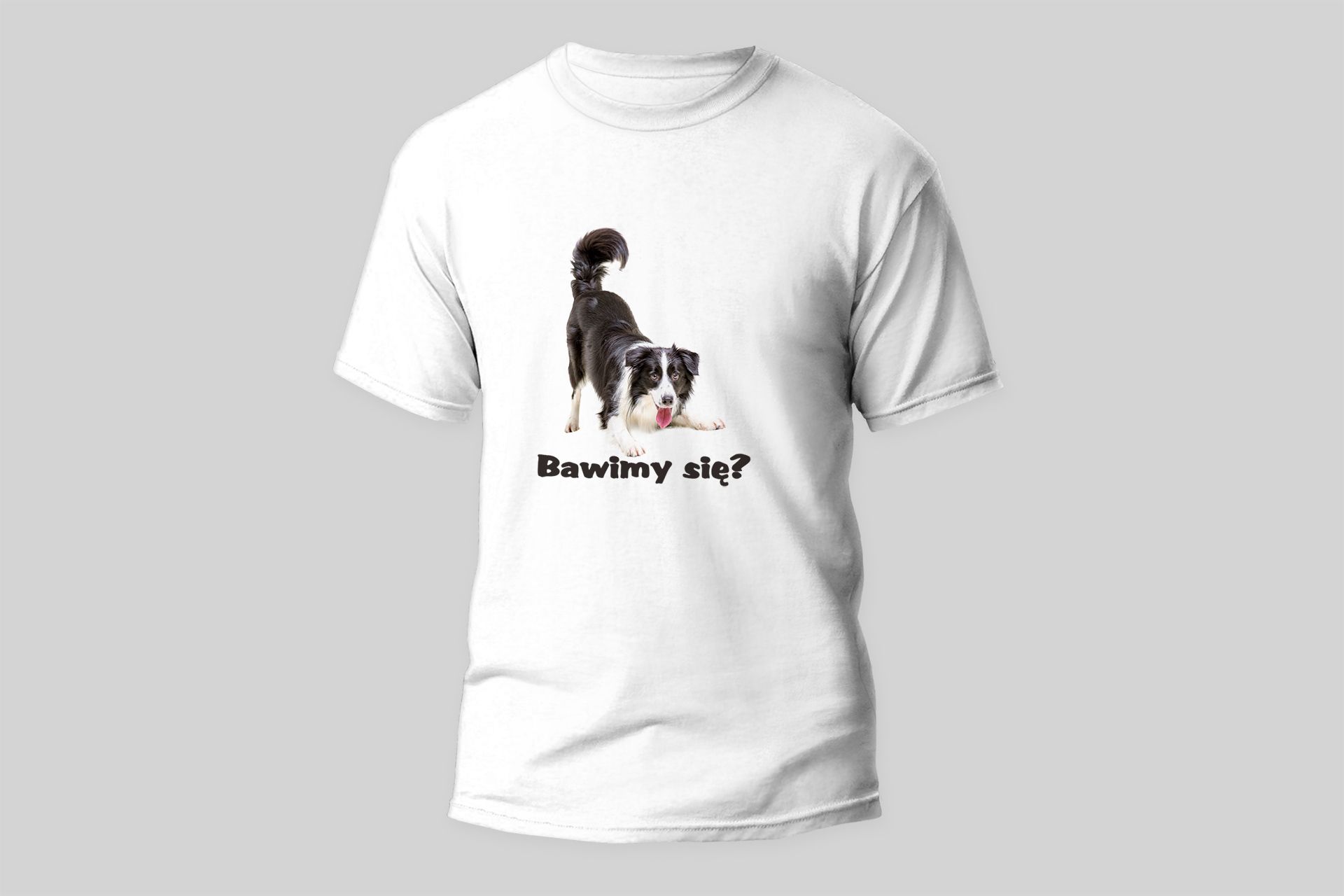 Męski t-shirt Psioszulka - owczarek collie - Bawimy sie?Męski t-shirt Psioszulka - owczarek collie - Bawimy sie?