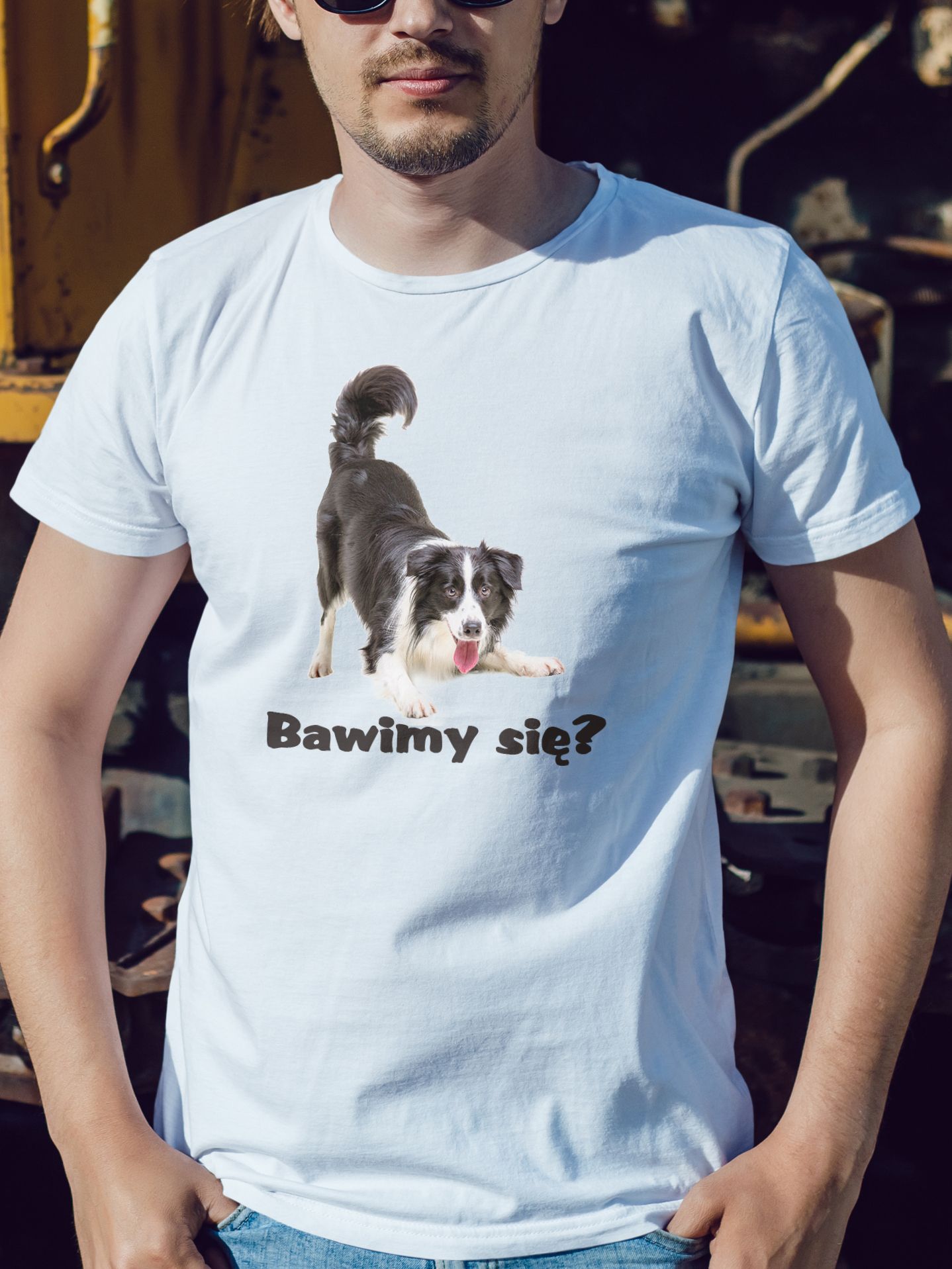 Męski t-shirt Psioszulka - owczarek collie - Bawimy sie?